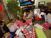 Paul was looking at the gift that his Mother and Father in law gave him. I tell you what my Dad out did himself this year. He gave everyone 2 stuffed animals and he took the stuffing out of one of them and filled it with one dollar bills. Poor Paul he just absolutely could not firgure out why someone gave him stuffed animals. Now the best part of this is when Geraldine figured it out that the butt of one of the stuffed animals had been resewn and she ripped it open and started screaming and money was flying every where. And then there was Paul still looking very confused, when he did figure it out he sure did hide his stuffed animal really quick.